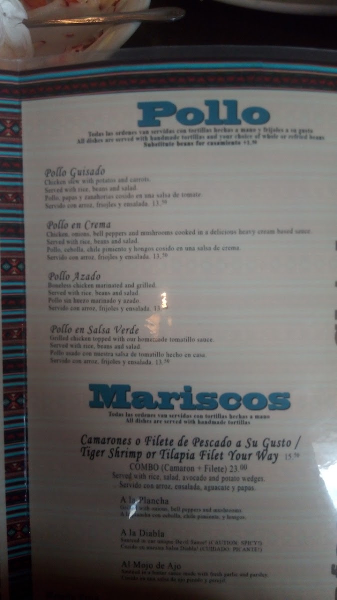 Boneless chicken cooked in our delicious cream sauce with onions, chili peppers and mushrooms. Served with rice, beans and salad