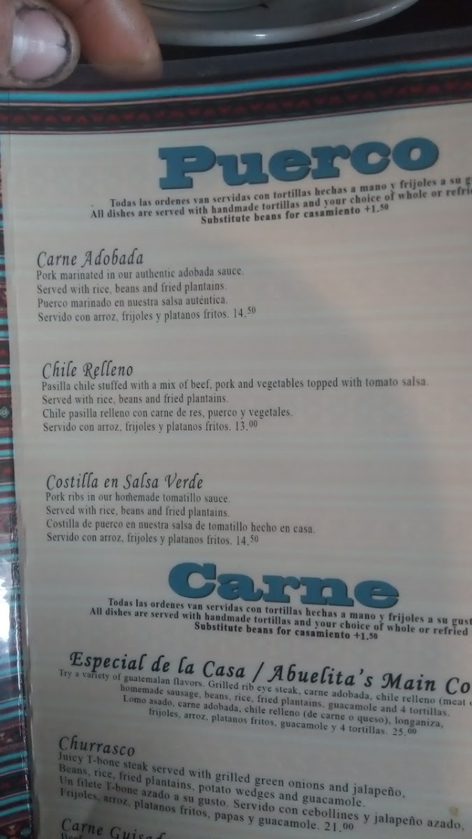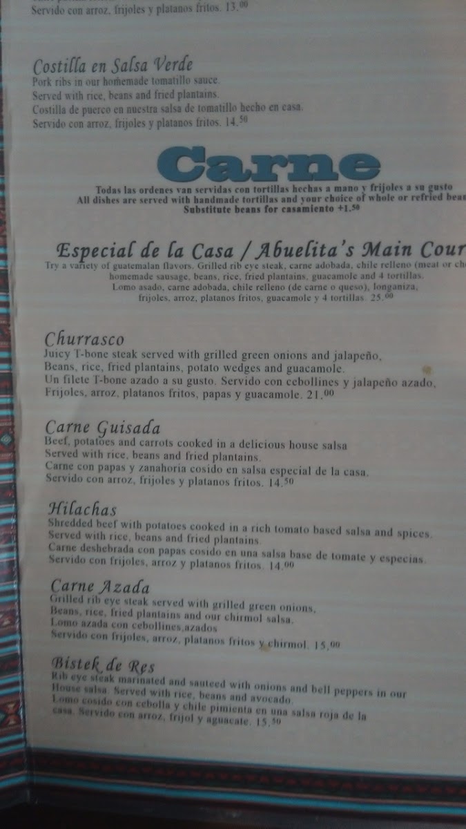 Pork marinated in our authentic Guatemalan marinated sauce. Served with rice, beans and fried plantains