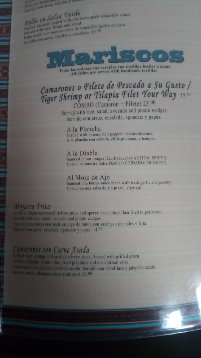 A whole delicious fried Mojarra marinated in lemon and spices. Served with rice, salad, avocado and potato